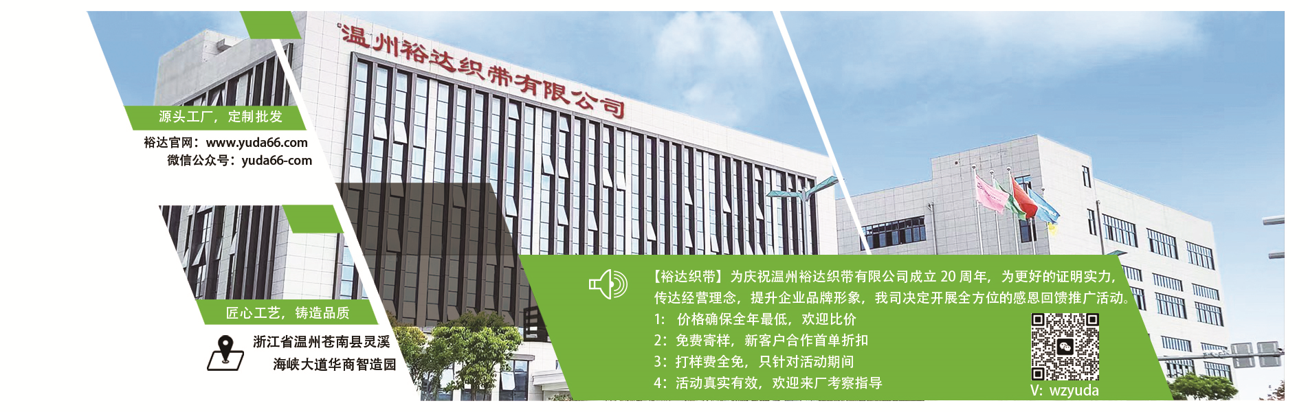 • 經(jīng)驗(yàn)優(yōu)勢(shì) 裕達(dá)從事織帶產(chǎn)品已有20多年的歷史。從一個(gè)小型的家庭作坊開始,發(fā)展成為一家擁有200多名員工的大型企業(yè)。